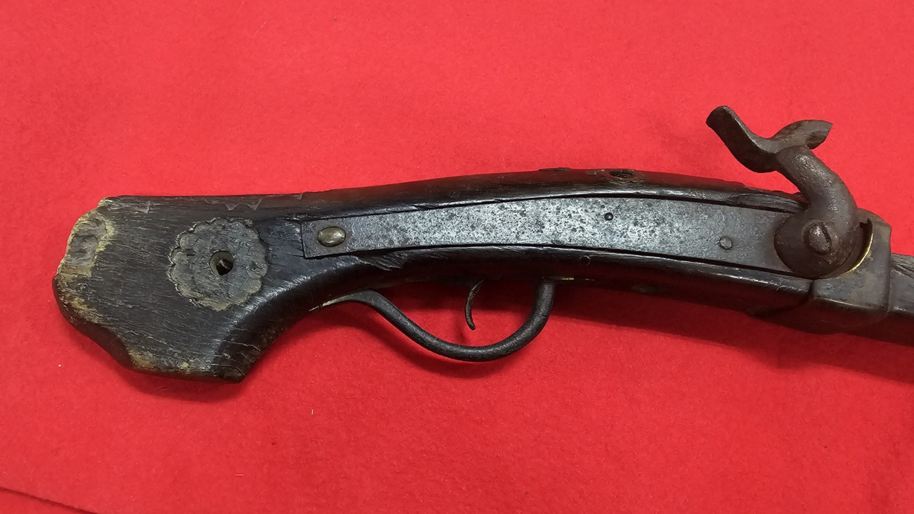 07-511 山田五兵衛 管打ち銃 刀剣類, 火縄銃 数量 07-511 山田五兵衛 管打ち銃個 ¥250,000 お買い物カゴに追加 説明文 追加情報 管打ち式はかなり珍しいですね。 表銘:山田五兵衛 裏銘:— 時代:江戸 全長:82.7cm 銃身長:54.6cm 口径:1.0cm 登 録:大阪府教育委員会 昭和49年2月5日 タグ 火縄銃, 無銘 関連商品 01-3025 山城大掾源國重(白鞘)脇差 (日刀保・特別保存) ¥550,000 07-319 刷毛目 金蒔絵 太刀掛 ¥99,000 01-2066 山城国住藤原信吉 (白鞘) 脇差(日刀保・特別保存刀剣) ¥500,000 07-084 江戸時代 時代具足一式 甲冑 鎧櫃付 ¥300,000 07-347 鉄砲掛 ¥65,000 02-3133 備後国貞行作 脇差 現代刀 ¥400,000